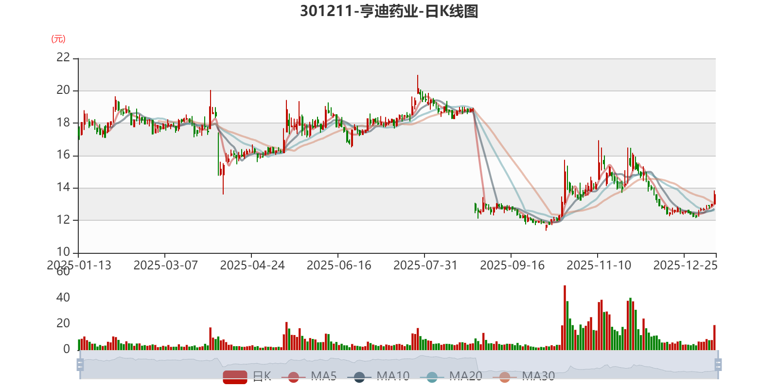 中证智能财讯亨迪药业(301211)1月13日晚间披露2025年度业绩预告,预计2025年归母净利润3100万元至3900万元,同比下降57.4%-66.14%;扣非净利润预计550万元-820万元,同比下降88.76%-92.46%。以1月13日收盘价计算,亨迪药业目前市盈率(TTM)约为145.52倍-183.07倍,市净率(LF)约2.51倍,市销率(TTM)约13.17倍。